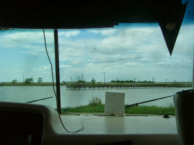 | The fishing pier out the front windshield |